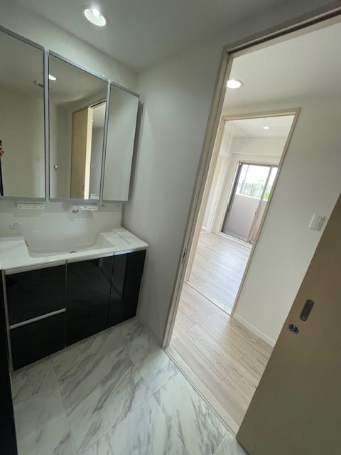 そのランドリールームと奥の洋室には壁がありましたがそれも取り払いランドリールーム、洋室両方から出入りが出来るクローゼットを造作して頂きました。